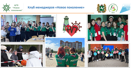 Менеджеры клуба «Новое поколение» являются участниками и организаторами множества значимых мероприятий. Мы разрабатываем и проводим различные игры, тренинги и ворк шопы. Принимаем участие и занимаем призовые места во Всероссийских, региональных и муниципальных конкурсах и фестивалях.